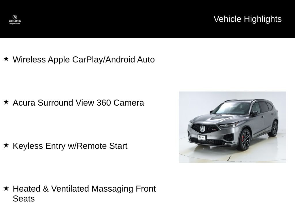 HARPER ACURA believes in the quality of the vehicles we sell so well that we provide an UNLIMITED MILES POWERTRAIN WARRANTY on every new and qualifying pre-owned vehicle it sells!!! This warranty is good at any ASE certified shop in the 48 continental United States!! Check out all these great options Exterior Parking Camera Rear, Heads-Up Display, Heated rear seats, Heated steering wheel, Power Liftgate, Power moonroof, Wheels: 21" x 9.5J Aluminum Alloy, 3rd row seats: split-bench, 4-Wheel Disc Brakes, 4.17 Axle Ratio, A/V remote: CabinControl, ABS brakes, Adaptive suspension, Air Conditioning, Alloy wheels, AM/FM radio: SiriusXM, Anti-whiplash front head restraints, Apple CarPlay/Android Auto, Audio memory, Auto High-beam Headlights, Auto tilt-away steering wheel, Auto-dimming Rear-View mirror, Auto-leveling suspension, Automatic temperature control, Brake assist, Bumpers: body-color, Compass, Delay-off headlights, Driver door bin, Driver vanity mirror, Dual front impact airbags, Dual front side impact airbags, Electronic Stability Control, Emergency communication system: AcuraLink, Four wheel independent suspension, Front anti-roll bar, Front Bucket Seats, Front Center Armrest, Front dual zone A/C, Front fog lights, Front reading lights, Fully automatic headlights, Garage door transmitter: HomeLink, Heated & Ventilated Front Sport Seats, Heated door mirrors, Heated front seats, HVAC memory, Illuminated entry, Knee airbag, Lane departure: Lane Keeping Assist System (LKAS) active, Leather steering wheel, Low tire pressure warning, Memory seat, Navigation system: Acura Navigation System with 3D View, Occupant sensing airbag, Outside temperature display, Overhead airbag, Overhead console, Panic alarm, Passenger door bin, Passenger vanity mirror, Perforated Premium Milano Leather Trimmed Seats, Power door mirrors, Power driver seat, Power passenger seat, Power steering, Power windows, Premium audio system: ELS Studio 3D Signature Edition, Radio data system, Radio: ELS Studio 3D Signature Ed Prem Aud System, Rain sensing wipers, Rear air conditioning, Rear anti-roll bar, Rear reading lights, Rear seat center armrest, Rear window defroster, Rear window wiper, Remote keyless entry, Security system, Speed control, Speed-sensing steering, Speed-Sensitive Wipers, Split folding rear seat, Spoiler, Sport steering wheel, Steering wheel memory, Steering wheel mounted audio controls, Tachometer, Telescoping steering wheel, Tilt steering wheel, Traction control, Trip computer, Turn signal indicator mirrors, Variably intermittent wipers, and Ventilated front seats.
