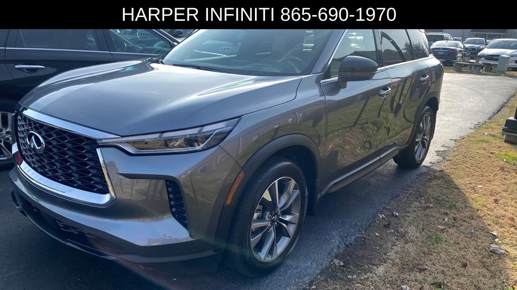 Harper INFINITI is pumped up to offer this attractive 2025 INFINITI QX60 in Graphite Shadow HARPER INFINITI believes in the quality of the vehicles we sell so well that we provide an UNLIMITED MILES, POWERTRAIN WARRANTY on every new and qualifying pre-owned vehicle it sells!!! This warranty is good at any ASE certified shop in the 48 continental United States!! Check out all these great options Navigation system: INFINITI InTouch Navigation, 3rd row seats: bench, 4-Wheel Disc Brakes, ABS brakes, Air Conditioning, Alloy wheels, AM/FM radio: SiriusXM, Auto High-beam Headlights, Auto tilt-away steering wheel, Auto-dimming Rear-View mirror, Automatic temperature control, Brake assist, Delay-off headlights, Driver door bin, Driver vanity mirror, Dual front impact airbags, Dual front side impact airbags, Electronic Stability Control, Exterior Parking Camera Rear, Four wheel independent suspension, Front anti-roll bar, Front Bucket Seats, Front dual zone A/C, Front reading lights, Fully automatic headlights, Garage door transmitter: HomeLink, Heated door mirrors, Heated front seats, Heated rear seats, Heated steering wheel, Illuminated entry, Knee airbag, Leather Shift Knob, Leather steering wheel, Leather-Appointed Seating Surfaces, Low tire pressure warning, Memory seat, Occupant sensing airbag, Outside temperature display, Overhead airbag, Overhead console, Panic alarm, Passenger door bin, Passenger vanity mirror, Power door mirrors, Power driver seat, Power Liftgate, Power moonroof, Power passenger seat, Power steering, Power windows, Radio data system, Rain sensing wipers, Rear air conditioning, Rear anti-roll bar, Rear reading lights, Rear side impact airbag, Rear window defroster, Rear window wiper, Reclining 3rd row seat, Remote keyless entry, Security system, Speed control, Speed-sensing steering, Speed-Sensitive Wipers, Split folding rear seat, Spoiler, Steering wheel memory, Steering wheel mounted audio controls, Tachometer, Telescoping steering wheel, Tilt steering wheel, Traction control, Trip computer, Turn signal indicator mirrors, and Variably intermittent wipers.