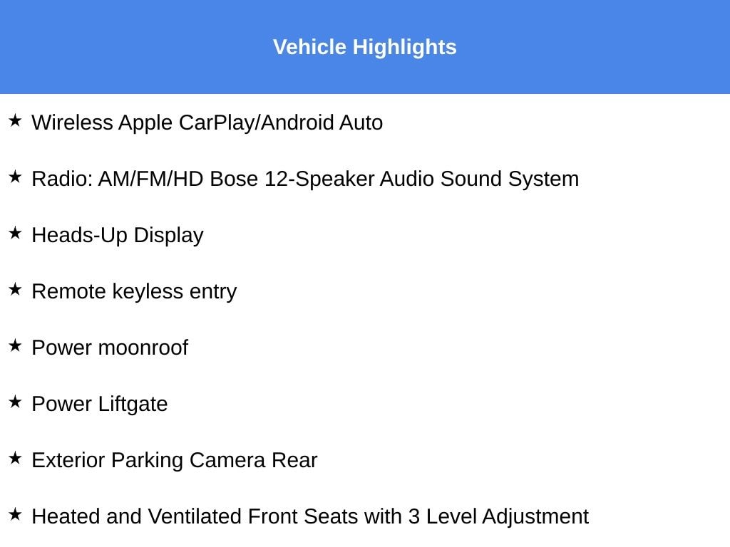 - Radio: AM/FM/HD Bose 12-Speaker Audio Sound System