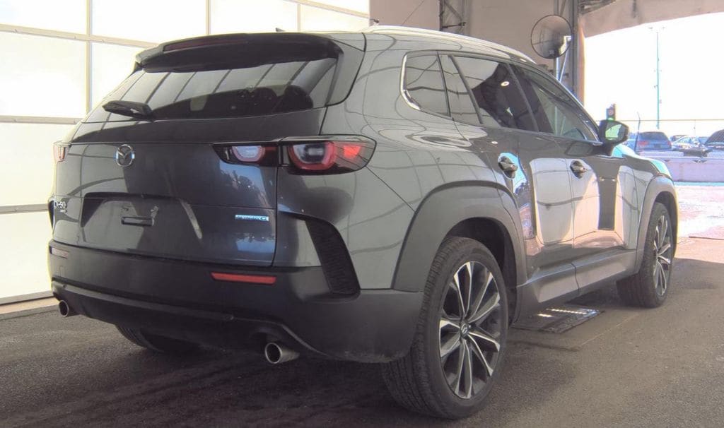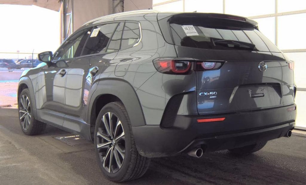 This CX-50 is packed with a wealth of premium features that elevate the driving experience. Enjoy the convenience of the power liftgate, the clarity of the Bose 12-speaker audio system, and the added safety of the Heads-Up Display. The heated and ventilated front seats provide optimal comfort, while the 20-inch alloy wheels with a striking black metallic finish give the vehicle a bold, sporty appearance.