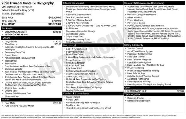 - Exterior Color : Hampton Gray Interior Color : BLACK