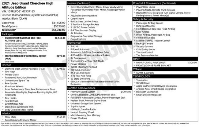 - Exterior Color : Diamond Black Crystal Pearlcoat Interior Color : BLACK