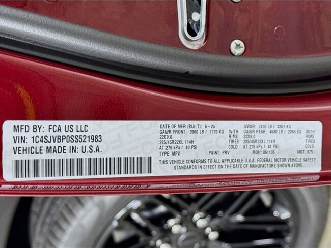 - Exterior Color : Velvet Red Pearlcoat Interior Color : BLACK