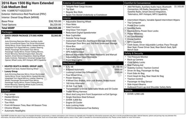 - Exterior Color : Delmonico Red Pearlcoat Interior Color : DIESEL GRAY/BLACK