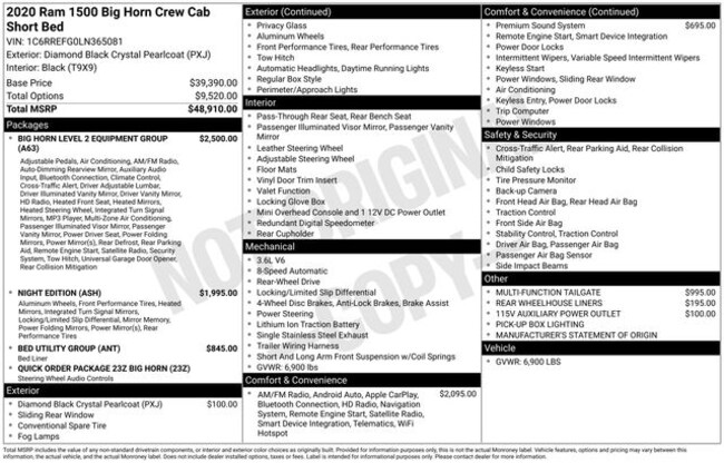 - Exterior Color : Diamond Black Crystal Pearlcoat Interior Color : BLACK