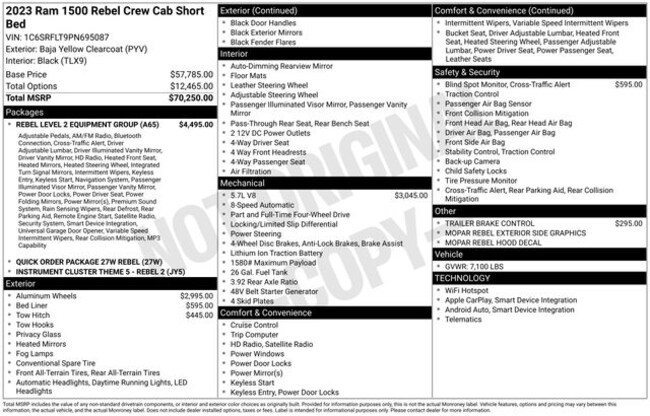 - Exterior Color : Baja Yellow Interior Color : BLACK