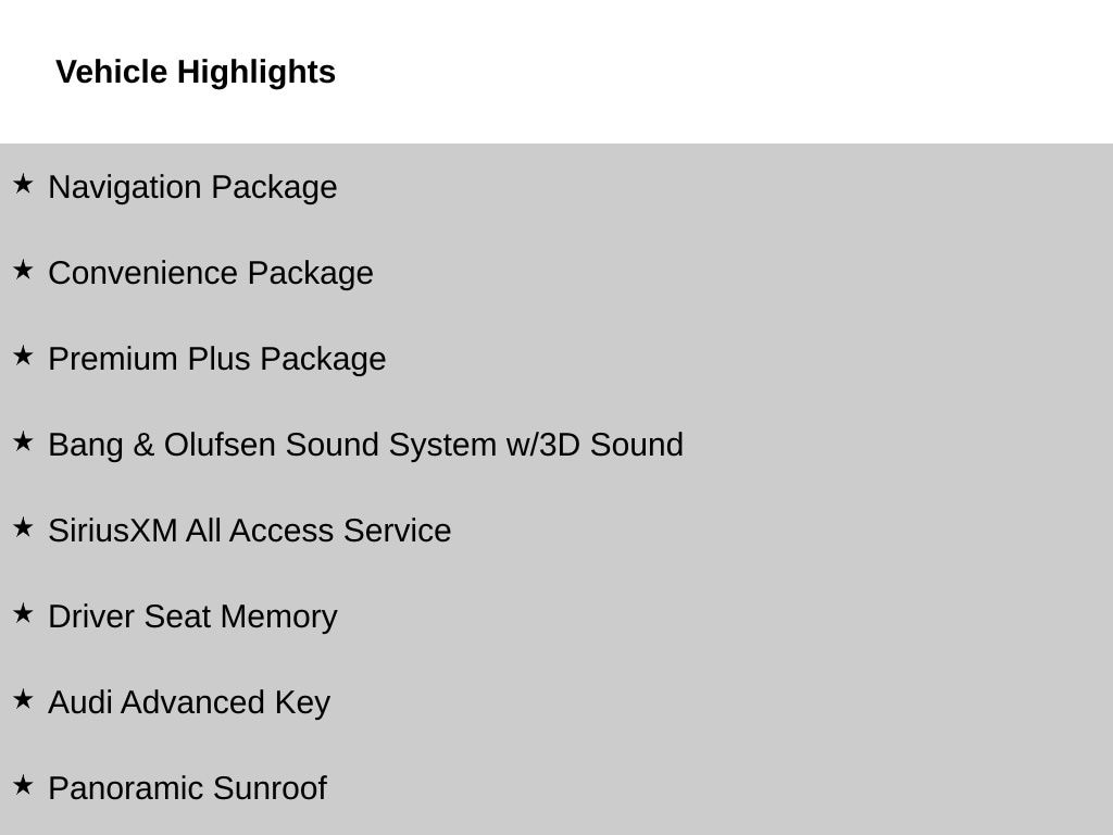 - Smart device integration: Audi smartphone interface w/wireless CarPlay