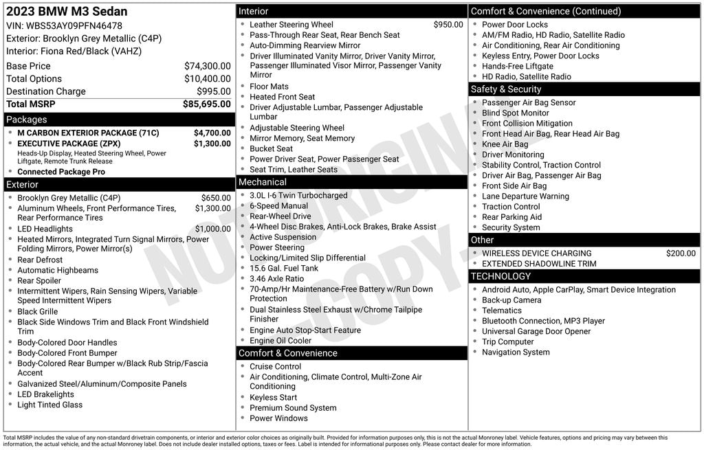 This 2023 BMW M3 Base is a true masterpiece, blending uncompromising performance, cutting-edge technology, and timeless style. Experience the thrill of ownership and schedule a test drive today. We're confident that once you get behind the wheel, you'll be captivated by the sheer brilliance of this exceptional sports car.