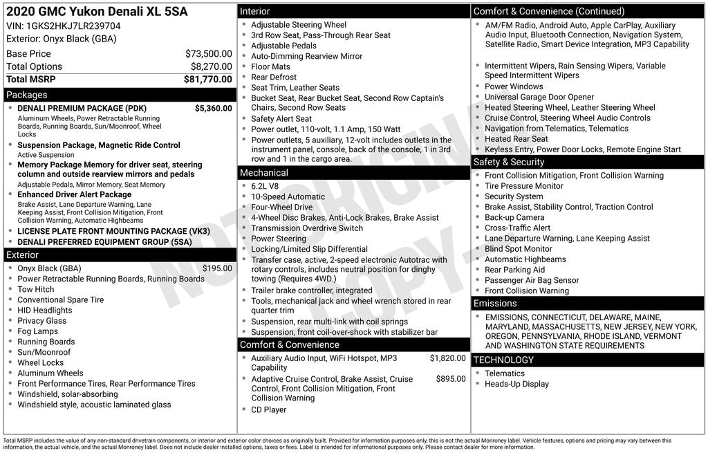Check out all these great options Advanced Adaptive Cruise Control (4-Wheel Disc & 4-Wheel VAC Power Antilock Brakes and Automatic Emergency Braking (UGN)), Denali Premium Package (Power Tilt-Sliding Sunroof w/Express-Open/Close, Pwr Retractable Assist Steps w/Perimeter Lighting, Wheel Locks, and Wheels: 22" x 8.5" Bright Aluminum), Enhanced Driver Alert Package (Automatic Emergency Braking, Forward Collision Alert, IntelliBeam Automatic High Beam On/Off, and Lane Keep Assist w/Lane Departure Warning), Magnetic Ride Control Suspension Package, Memory Package, Preferred Equipme