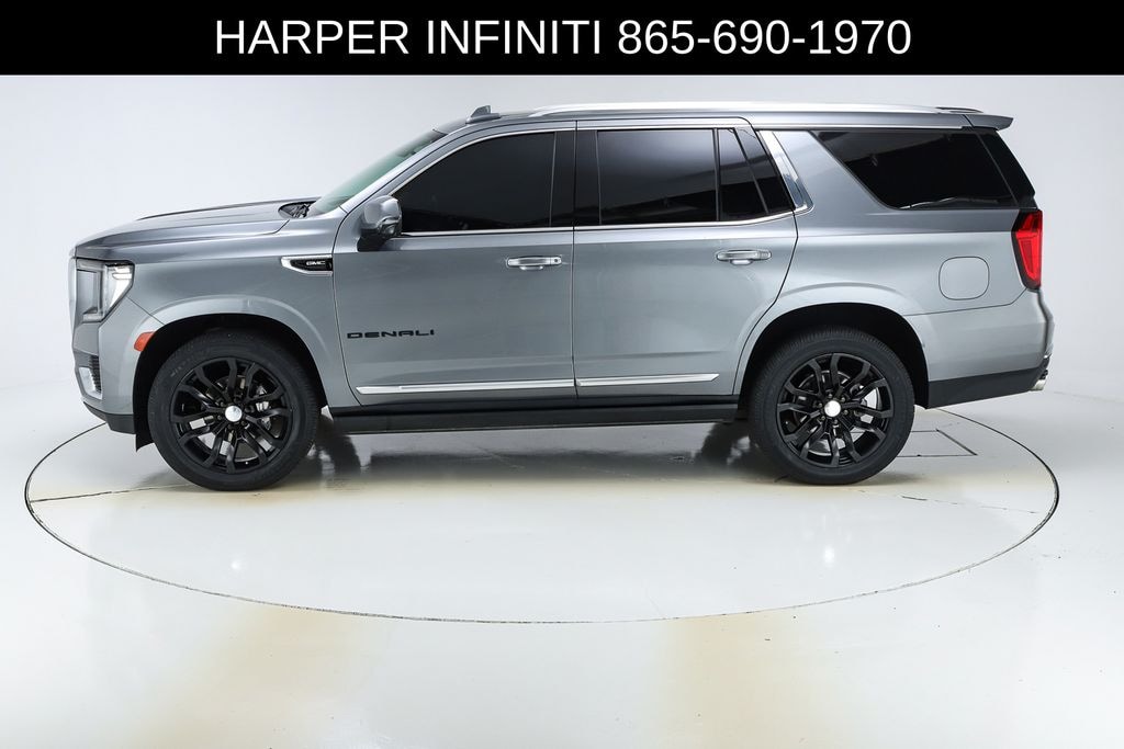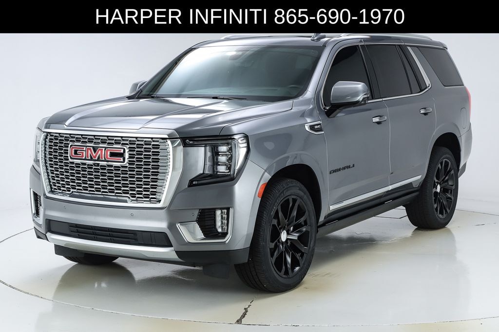 Harper INFINITI is proud to offer this good-looking 2021 GMC Yukon in Satin Steel Metallic HARPER INFINITI believes in the quality of the vehicles we sell so well that we provide an UNLIMITED MILES, POWERTRAIN WARRANTY on every new and qualifying pre-owned vehicle it sells!!! This warranty is good at any ASE certified shop in the 48 continental United States!! Check out all these great options Advanced Security Package (Glass Breakage Sensor, Theft-Deterrent Alarm System, Vehicle Inclination Sensor, and Vehicle Interior Movement Sensor), Advanced Technology Package (Adaptive Cruise Control, Enhanced Automatic Emergency Braking, Inside Rearview Auto-Dimming Rear Camera Mirror, and Rear Camera Mirror Washer), Denali Premium Package (Dual-Pane Panoramic Power Sunroof and Power-Retractable Assist Steps), Preferred Equipment Group 5SA (12-Way Power Seat Adjusters, 15" Diagonal Multi-Color Head-Up Display, 2 Presets For Outside Rearview Mirrors, 3rd Row 60/40 Power-Folding Split-Bench Seat, Bright Front & Rear Door Sill Plates, Chrome Door Handles w/Body-Color Strip, Dual Exhaust System, Galvano Bodyside Moldings, Hands-Free Power Programmable Rear Liftgate, HD Surround Vision, Heated & Ventilated Driver & Front Passenger Seats, Heated 2nd Row Outboard Position Seats, Heated Automatic Steering Wheel, Heated Driver & Front Passenger Seats, Hill Descent Control, Inside Rear-View Auto-Dimming Mirror, Outside Heated Power-Adjustable Mirrors, Power Release 2nd Row Bucket Seats, Power Tilt & Telescopic Steering Column, Rear Pedestrian Alert, Safety Alert Seat, and Universal Home Remote), Navigation System, 14 Speakers, 3.23 Rear Axle Ratio, 3rd row seats: split-bench, 4-Wheel Disc Brakes, ABS brakes, Adaptive suspension, Air Conditioning, Alloy wheels, AM/FM radio: SiriusXM with 360L, Apple CarPlay/Android Auto, Auto High-beam Headlights, Auto-dimming door mirrors, Auto-dimming Rear-View mirror, Auto-leveling suspension, Automatic Emergency Braking, Automatic temperature control, Bodyside moldings, Bose 14-Speaker Surround w/CenterPoint, Brake assist, Bumpers: body-color, Compass, Delay-off headlights, Driver door bin, Driver vanity mirror, Dual front impact airbags, Dual front side impact airbags, Electronic Stability Control, Emergency communication system: OnStar and GMC connected services capable, Following Distance Indicator, Forward Collision Alert, Four wheel independent suspension, Front & Rear Park Assist, Front anti-roll bar, Front Bucket Seats, Front Center Armrest, Front dual zone A/C, Front fog lights, Front Pedestrian Braking, Front reading lights, Fully automatic headlights, Garage door transmitter, HD Radio, Heads-Up Display, Heated door mirrors, Heated front seats, Heated rear