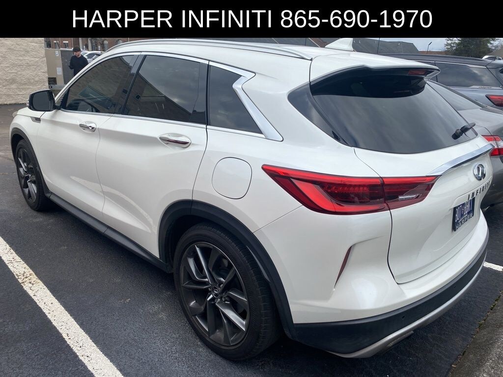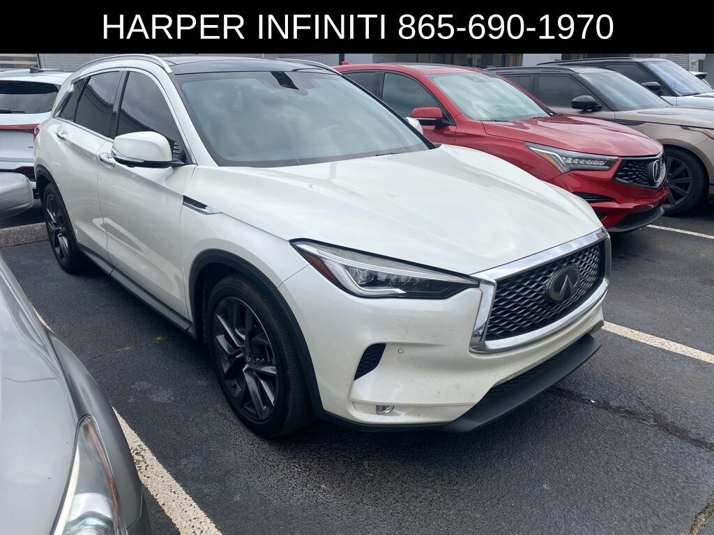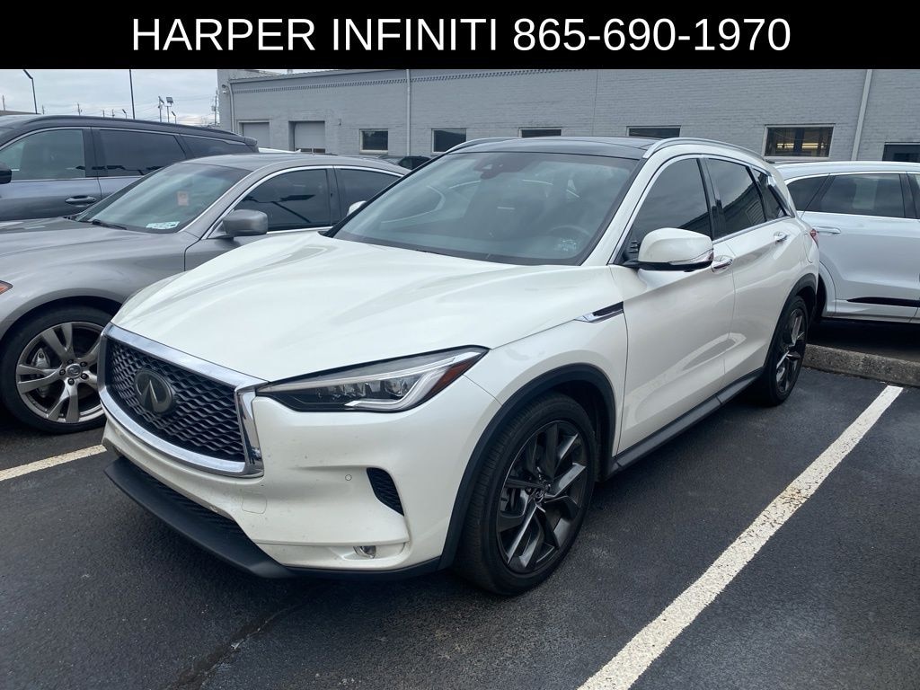 Harper INFINITI is excited to offer this good-looking 2019 INFINITI QX50 in Majestic White HARPER INFINITI believes in the quality of the vehicles we sell so well that we provide an UNLIMITED MILES, POWERTRAIN WARRANTY on every new and qualifying pre-owned vehicle it sells!!! This warranty is good at any ASE certified shop in the 48 continental United States!! Check out all these great options ProASSIST Package (Back-Up Collision Intervention (BCI), Distance Control Assist, Intelligent Cruise Control, and Rear Cross Traffic Alert), Sensory Package (2-Way Passenger Power Lumbar, Adaptive Front Lighting System, Advanced Climate Control System, Bose 16-Speaker Premium Audio System, Climate Controlled Seats, Extended Interior Ambient Lighting, Headlamps (LED High/Low Beam), Heated Front Seats, Heated Steering Wheel, Memory Seats, Motion Activated Liftgate, Natural Maple Wood Interior Trim, Power Tilt & Telescopic Steering Wheel, Rear Side Window Sunshades, Reverse Synchronization Mirrors, Semi-Aniline Leather Appointed Seating, and Wheels: 20" x 8.5J Dark Tinted Aluminum Alloy), 4-Wheel Disc Brakes, 5.846 Axle Ratio, 6 Speakers, ABS brakes, Activation Disclaimer, Air Conditioning, Alloy wheels, AM/FM radio: SiriusXM, AM/FM/CD Audio System, Anti-whiplash front head restraints, Auto-dimming Rear-View mirror, Automatic temperature control, Brake assist, Bumpers: body-color, CD player, Delay-off headlights, Driver door bin, Driver vanity mirror, Dual front impact airbags, Dual front side impact airbags, Electronic Stability Control, Emergency communication system: INFINITI Connection, Exterior Parking Camera Rear, Floor Mats, Four wheel independent suspension, Front anti-roll bar, Front Bucket Seats, Front Center Armrest, Front dual zone A/C, Front fog lights, Front reading lights, Garage door transmitter: HomeLink, Heated door mirrors, Illuminated entry, Knee airbag, Leather Shift Knob, Literature Kit, Low tire pressure warning, Navigation system: INFINITI InTouch Navigation, Occupant sensing airbag, Outside temperature display, Overhead airbag, Overhead console, Panic alarm, Passenger door bin, Passenger vanity mirror, Power door mirrors, Power driver seat, Power Liftgate, Power moonroof, Power passenger seat, Power steering, Power windows, Radio data system, Rain sensing wipers, Rear air conditioning, Rear anti-roll bar, Rear reading lights, Rear seat center armrest, Rear window defroster, Rear window wiper, Remote keyless entry, Roof rack: rails only, Security system, Speed control, Speed-sensing steering, Speed-Sensitive Wipers, Split folding rear seat, Spoiler, Standard Leather Seat Trim, Steering wheel mounted audio controls, Tachometer, Telescoping steering wheel, Tilt steering wheel, Traction control, Trip computer, Turn signal indicator mirrors, Variably intermittent wipers, and Wheels: 19" x 7.5J Silver Painted Aluminum Alloy.