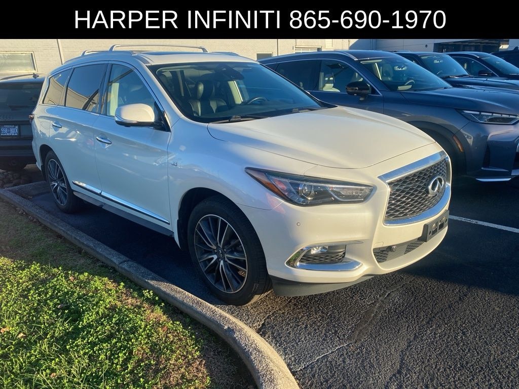 Harper INFINITI is pumped up to offer this gorgeous 2019 INFINITI QX60 in Majestic White HARPER INFINITI believes in the quality of the vehicles we sell so well that we provide an UNLIMITED MILES, POWERTRAIN WARRANTY on every new and qualifying pre-owned vehicle it sells!!! This warranty is good at any ASE certified shop in the 48 continental United States!! Check out all these great options Cargo Package Sensory (Cargo Protector, Console Net, First Aid Kit, and Rear Cargo Cover), Essential Package (Around View Monitor w/Moving Object Detection, Front & Rear Sonar System (2FR/2RR), Illuminated Kick Plates (IKP), INFINITI InTouch w/Navigation & InTouch Services, Leather-Appointed Seat Trim, Rain-Sensing Front Windshield Wipers, and Voice Recognition for Navigation Functions), ProACTIVE Package (Active Trace Control, Auto Side Dimming Mirrors, Backup Collision Intervention (BCI), Blind Spot Intervention (BSI) System, Distance Control Assist, ECO Pedal, Front & Rear Sonar Sensors (4FR/4RR), Front Pre-Crash Seatbelts, High Beam Assist, Intelligent Cruise Control (Full-Speed Range), Lane Departure Prevention (LDP), and Lane Departure Warning System), Sensory Package (1st & 2nd Row Unique Hour Glass Seat Quilting, 2nd & 3rd Row Moonroof w/Power Rear Sunshade, Advanced Climate Control System, Bose Cabin Surround Sound System, Climate-Controlled Front Seats, Cross Bars, Heated 2nd-Row Seats, Maple Interior Accents, Motion Activated Liftgate, Power Return 3rd Row Seat Back, and Wheels: 20" 15-Spoke Aluminum-Alloy), 13 Speakers, 3rd row seats: bench, 4-Wheel Disc Brakes, 5.25 Axle Ratio, ABS brakes, Air Conditioning, Alloy wheels, AM/FM radio: SiriusXM, Anti-whiplash front head restraints, Auto-dimming Rear-View mirror, Automatic temperature control, Bodyside moldings, Brake assist, Bumpers: body-color, Carpeted Floor Mats (4-Piece Set), CD player, Cross Bars (K12), Delay-off headlights, Driver door bin, Driver vanity mirror, Dual front impact airbags, Dual front side impact airbags, DVD-Audio, Electronic Stability Control, Four wheel independent suspension, Front anti-roll bar, Front Bucket Seats, Front Center Armrest w/Storage, Front dual zone A/C, Front fog lights, Front reading lights, Fully automatic headlights, Garage door transmitter: HomeLink, Heated door mirrors, Heated Front Seats, Heated front seats, Heated steering wheel, Illuminated entry, Illuminated Kick Plates (K11), Leather steering wheel, Leatherette Seat Trim, Literature Kit, Low tire pressure warning, Memory seat, Occupant sensing airbag, Outside temperature display, Overhead airbag, Overhead console, Panic alarm, Passenger door bin, Passenger vanity mirror, Power door mirrors, Power driver seat, Power Liftgate, Power moonroof, Power passenger seat, Power steering, Power wind