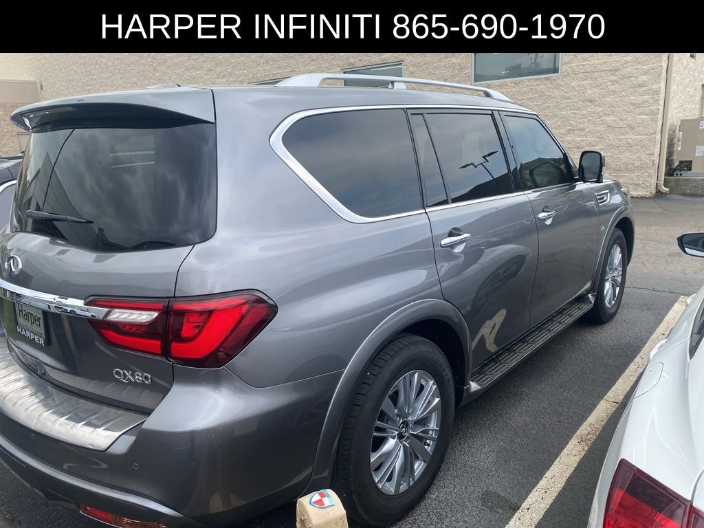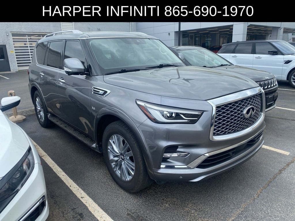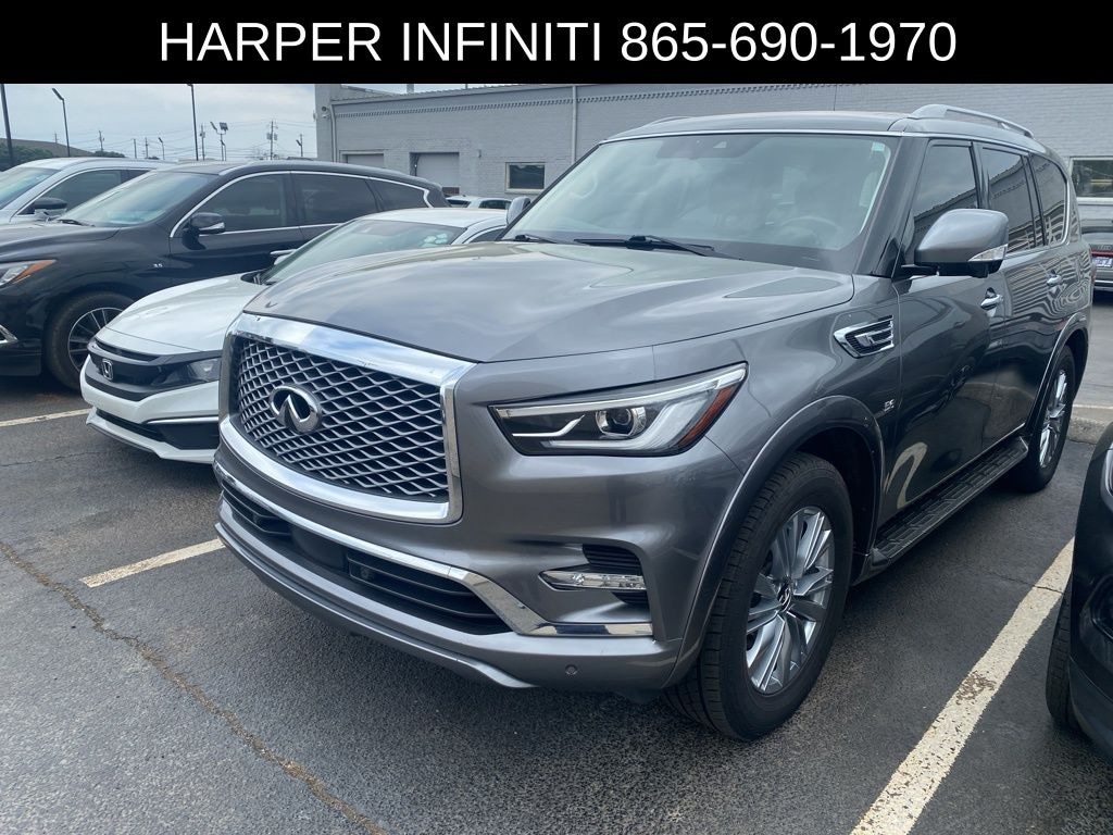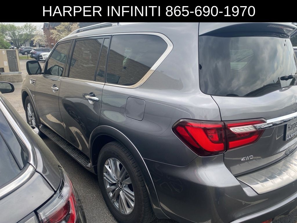 Harper INFINITI is pumped up to offer this handsome-looking 2020 INFINITI QX80 in Graphite Shadow HARPER INFINITI believes in the quality of the vehicles we sell so well that we provide an UNLIMITED MILES, POWERTRAIN WARRANTY on every new and qualifying pre-owned vehicle it sells!!! This warranty is good at any ASE certified shop in the 48 continental United States!! Check out all these great options ProASSIST Package (Blind Spot Intervention (BSI), Intelligent Cruise Control, Lane Departure Prevention (LDP), and Smart Rear View Mirror), 13 Speakers, 2.937 Axle Ratio, 3rd row seats: split-bench, 4-Wheel Disc Brakes, ABS brakes, Air Conditioning, Alloy wheels, AM/FM radio: SiriusXM, Anti-whiplash front head restraints, Apple CarPlay/Android Auto, Auto High-beam Headlights, Auto tilt-away steering wheel, Auto-dimming door mirrors, Auto-dimming Rear-View mirror, Auto-leveling suspension, Automatic temperature control, Blind Spot Warning, Brake assist, Bumpers: body-color, CD player, Compass, Delay-off headlights, Driver door bin, Driver vanity mirror, Dual front impact airbags, Dual front side impact airbags, DVD-Audio, Electronic Stability Control, Emergency communication system: INFINITI Connection, Four wheel independent suspension, Front anti-roll bar, Front Bucket Seats, Front Center Armrest, Front dual zone A/C, Front fog lights, Front reading lights, Fully automatic headlights, Garage door transmitter: HomeLink, Heated door mirrors, Heated Front Bucket Seats, Heated front seats, Heated steering wheel, Illuminated entry, Leather Shift Knob, Leather steering wheel, Leather-Appointed Seats, Literature Kit, Low tire pressure warning, Memory seat, Navigation system: INFINITI InTouch Navigation, Occupant sensing airbag, Outside temperature display, Overhead airbag, Overhead console, Panic alarm, Passenger door bin, Passenger vanity mirror, Power door mirrors, Power driver seat, Power Liftgate, Power moonroof, Power passenger seat, Power steering, Power windows, Radiant Illuminated Kick Plates, Radio data system, Radio: AM/FM/HD w/Single In-Dash CD Player & MP3, Rain sensing wipers, Rear air conditioning, Rear anti-roll bar, Rear audio controls, Rear reading lights, Rear seat center armrest, Rear window defroster, Rear window wiper, Reclining 3rd row seat, Remote keyless entry, Security system, Speed control, Speed-sensing steering, Split folding rear seat, Spoiler, Steering wheel memory, Steering wheel mounted audio controls, Tachometer, Telescoping steering wheel, Tilt steering wheel, Traction control, Trip computer, Turn signal indicator mirrors, Variably intermittent wipers, Voltmeter, and Wheels: 20" x 8.0" Aluminum-Alloy.