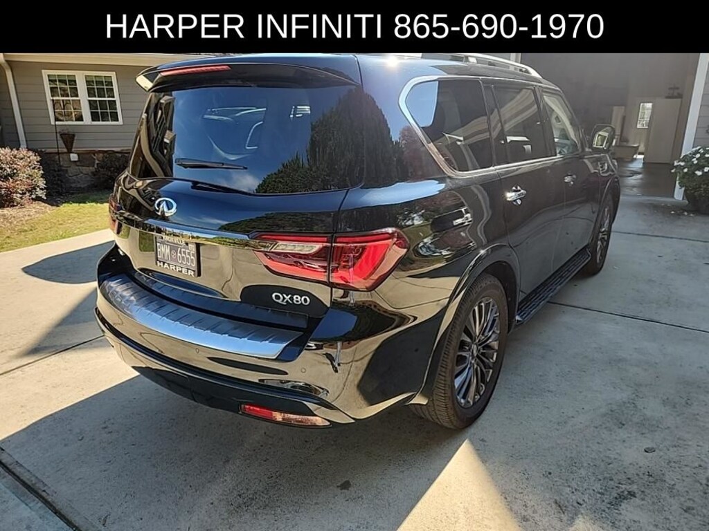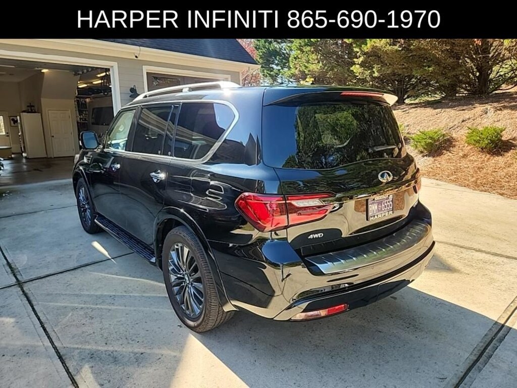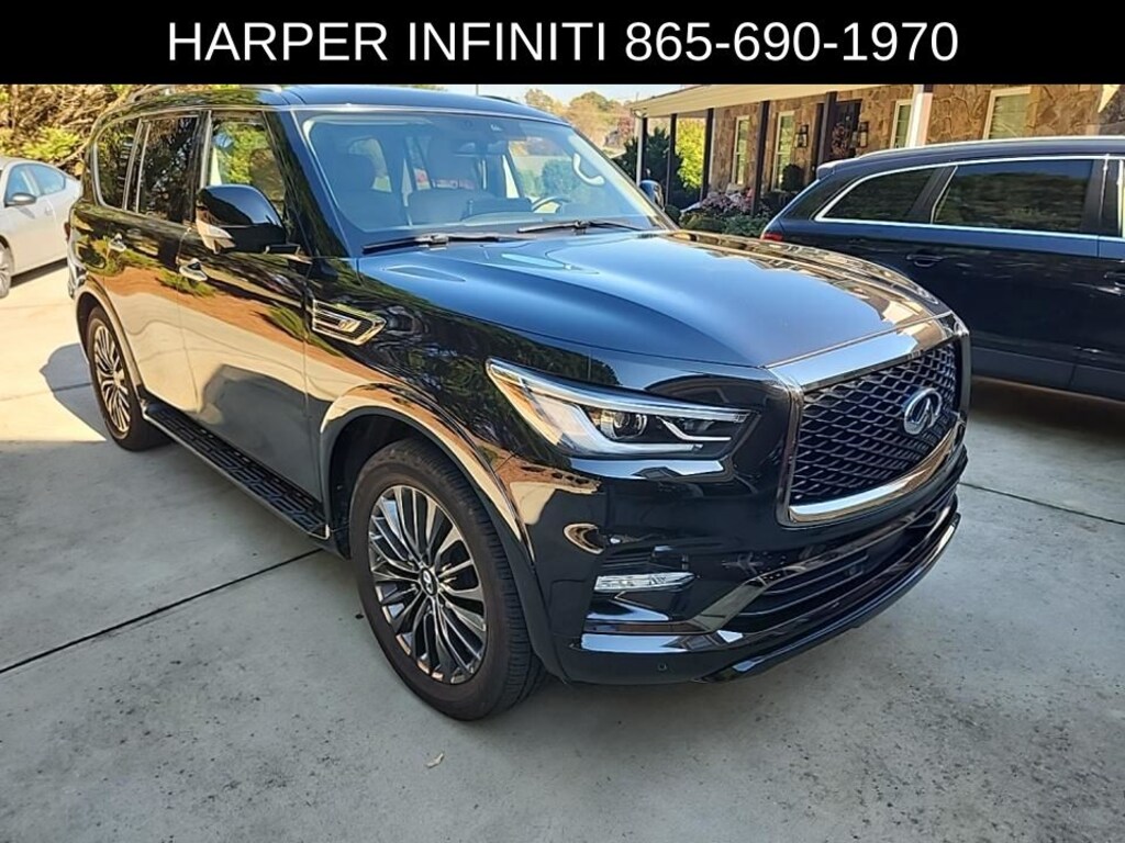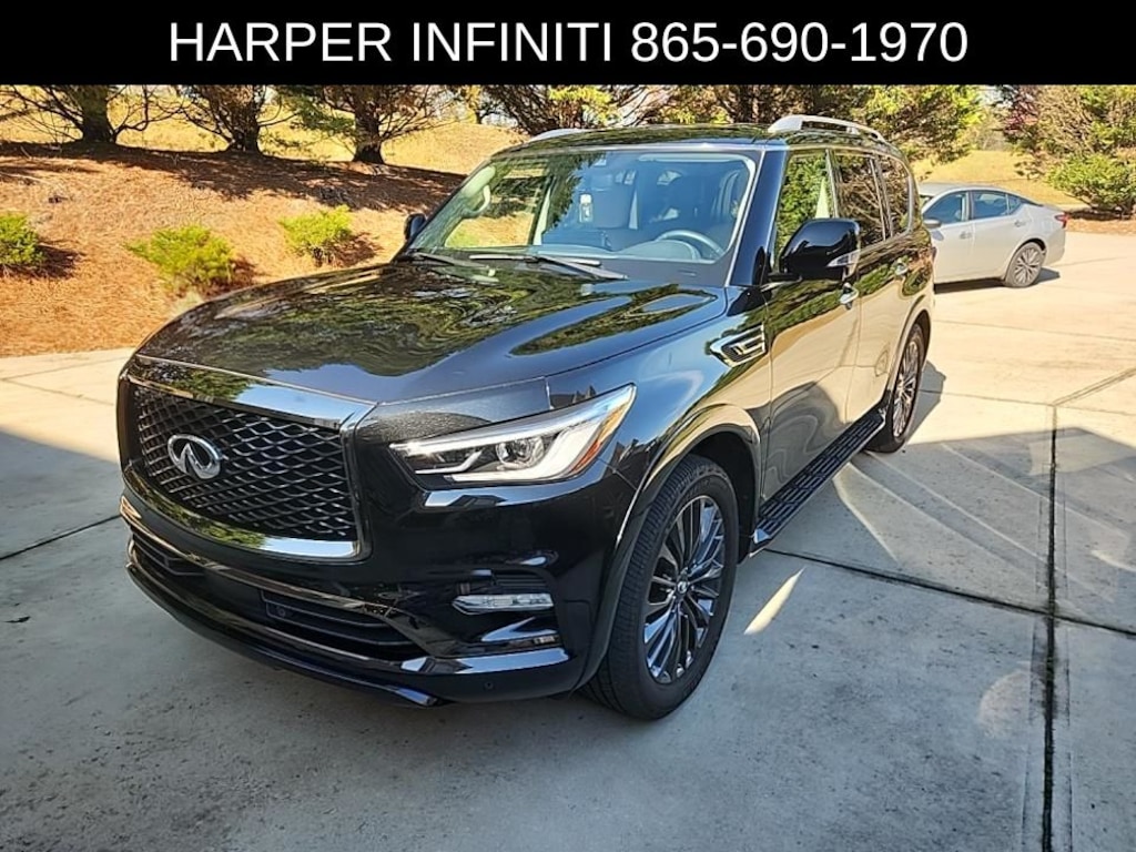 Harper INFINITI is pleased to offer this great-looking 2022 INFINITI QX80 in Mineral Black HARPER INFINITI believes in the quality of the vehicles we sell so well that we provide an UNLIMITED MILES, POWERTRAIN WARRANTY on every new and qualifying pre-owned vehicle it sells!!! This warranty is good at any ASE certified shop in the 48 continental United States!! Check out all these great options Cargo Package (Console Net, First-Aid Kit, High-Density Non-Slip Rear Cargo Carpet, and Nylon-Cord Cargo Net), 13 Speakers, 2.937 Axle Ratio, 3rd row seats: split-bench, 4-Wheel Disc Brakes, ABS brakes, Air Conditioning, Alloy wheels, AM/FM radio: SiriusXM, Anti-whiplash front head restraints, Auto High-beam Headlights, Auto tilt-away steering wheel, Auto-dimming door mirrors, Auto-dimming Rear-View mirror, Auto-leveling suspension, Automatic temperature control, Brake assist, Bumpers: body-color, Compass, Delay-off headlights, Driver door bin, Driver vanity mirror, Dual front impact airbags, Dual front side impact airbags, Electronic Stability Control, Emergency communication system: INFINITI InTouch w/1-year trial, Four wheel independent suspension, Front anti-roll bar, Front Bucket Seats, Front Center Armrest, Front dual zone A/C, Front fog lights, Front reading lights, Fully automatic headlights, Garage door transmitter: HomeLink, Heated door mirrors, Heated Front Bucket Seats, Heated front seats, Heated steering wheel, Illuminated entry, INFINITI Radiant Illuminated Kick Plates, Leather Shift Knob, Leather steering wheel, Leather-Appointed Seats, Literature Kit, Low tire pressure warning, Memory seat, Navigation system: INFINITI InTouch Navigation, Occupant sensing airbag, Outside temperature display, Overhead airbag, Overhead console, Panic alarm, Passenger door bin, Passenger vanity mirror, Power door mirrors, Power driver seat, Power Liftgate, Power moonroof, Power passenger seat, Power steering, Power windows, Premium audio system: Bose, Premium Select Sahara Stone Interior, Radio data system, Radio: Bose Premium Audio System w/13 Speakers, Rain sensing wipers, Rear air conditioning, Rear anti-roll bar, Rear reading lights, Rear seat center armrest, Rear window defroster, Rear window wiper, Reclining 3rd row seat, Remote keyless entry, Security system, Speed control, Speed-sensing steering, Split folding rear seat, Spoiler, Steering wheel memory, Steering wheel mounted audio controls, Tachometer, Telescoping steering wheel, Tilt steering wheel, Traction control, Trip computer, Turn signal indicator mirrors, Variably intermittent wipers, Voltmeter, and Wheels: 22" x 8.0" Dark Cast Chrome Aluminum-Alloy.