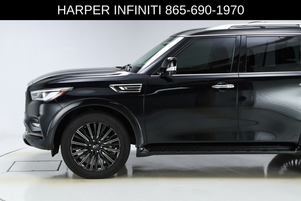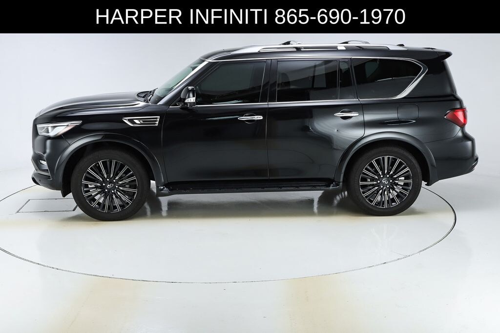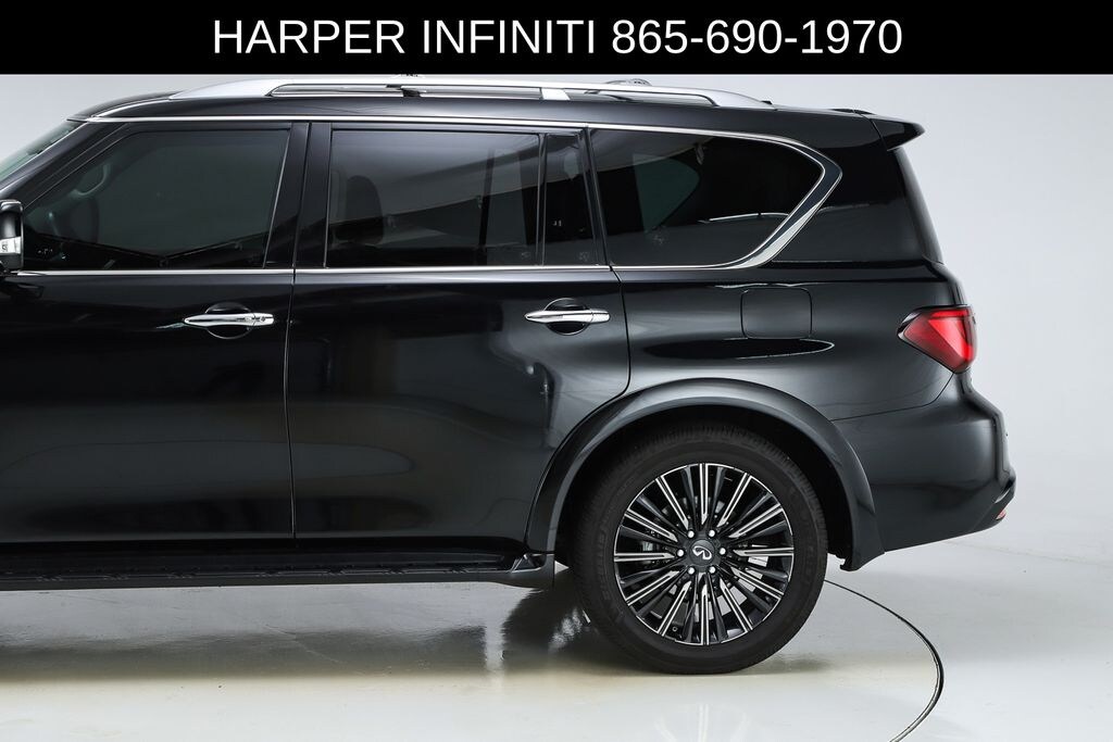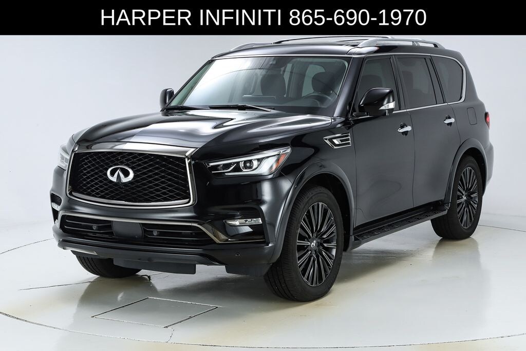 Harper INFINITI is pumped up to offer this outstanding 2022 INFINITI QX80 in Mineral Black HARPER INFINITI believes in the quality of the vehicles we sell so well that we provide an UNLIMITED MILES, POWERTRAIN WARRANTY on every new and qualifying pre-owned vehicle it sells!!! This warranty is good at any ASE certified shop in the 48 continental United States!! Check out all these great options All-Season Package (All-Season Floor Mats and Cargo Protector), Cargo Package (Console Net, First-Aid Kit, High-Density Non-Slip Rear Cargo Carpet, and Nylon-Cord Cargo Net), Navigation system: INFINITI InTouch Navigation, 13 Speakers, 2.937 Axle Ratio, 3rd row seats: split-bench, 4-Wheel Disc Brakes, ABS brakes, Air Conditioning, Alloy wheels, AM/FM radio: SiriusXM, Anti-whiplash front head restraints, Auto High-beam Headlights, Auto tilt-away steering wheel, Auto-dimming door mirrors, Auto-dimming Rear-View mirror, Auto-leveling suspension, Automatic temperature control, Brake assist, Bumpers: body-color, Compass, Delay-off headlights, Driver door bin, Driver vanity mirror, Dual front impact airbags, Dual front side impact airbags, Electronic Stability Control, Emergency communication system: INFINITI InTouch w/1-year trial, Four wheel independent suspension, Front anti-roll bar, Front Bucket Seats, Front Center Armrest, Front dual zone A/C, Front fog lights, Front reading lights, Fully automatic headlights, Garage door transmitter: HomeLink, Heated door mirrors, Heated Front Bucket Seats, Heated front seats, Heated steering wheel, Illuminated entry, INFINITI Radiant Illuminated Cargo Scuff Plates, INFINITI Radiant Illuminated Kick Plates, INFINITI Radiant Welcome Lighting, Leather Shift Knob, Leather steering wheel, Leather-Appointed Seats, Literature Kit, Low tire pressure warning, Memory seat, Occupant sensing airbag, Outside temperature display, Overhead airbag, Overhead console, Panic alarm, Passenger door bin, Passenger vanity mirror, Power door mirrors, Power driver seat, Power Liftgate, Power moonroof, Power passenger seat, Power steering, Power windows, Premium audio system: Bose, Premium Select Graphite Interior, Radio data system, Radio: Bose Premium Audio System w/13 Speakers, Rain sensing wipers, Rear air conditioning, Rear anti-roll bar, Rear reading lights, Rear seat center armrest, Rear window defroster, Rear window wiper, Reclining 3rd row seat, Remote keyless entry, Roof Rail Cross Bars, Security system, Speed control, Speed-sensing steering, Split folding rear seat, Spoiler, Steering wheel memory, Steering wheel mounted audio controls, Tachometer, Telescoping steering wheel, Tilt steering wheel, Traction control, Trip computer, Turn signal indicator mirrors, Variably intermittent wipers, Voltmeter, and Wheels: 22" x 8.0" Dark Cast Chrome Aluminum-Alloy.