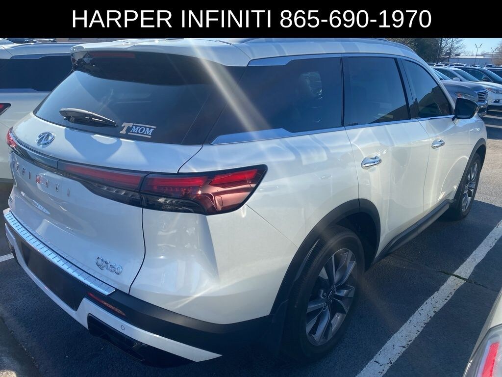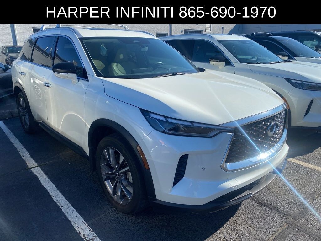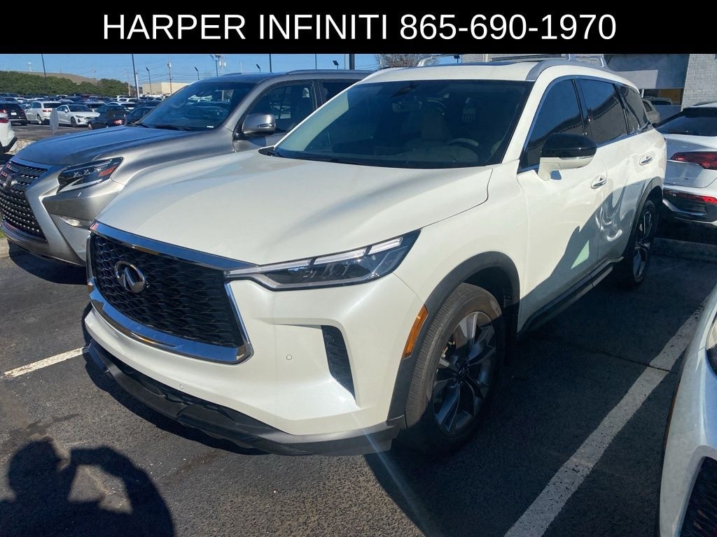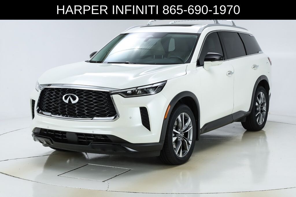 Harper Infiniti is excited to offer this captivating 2023 INFINITI QX60 LUXE in White. HARPER INFINITI believes in the quality of the vehicles we sell so well that we provide an UNLIMITED MILES, POWERTRAIN WARRANTY on every new and qualifying pre-owned vehicle it sells!!! This warranty is good at any ASE certified shop in the 48 continental United States!! Check out all these great options: Navigation system: INFINITI InTouch Navigation, Cargo Package, 9 Speakers, and more.