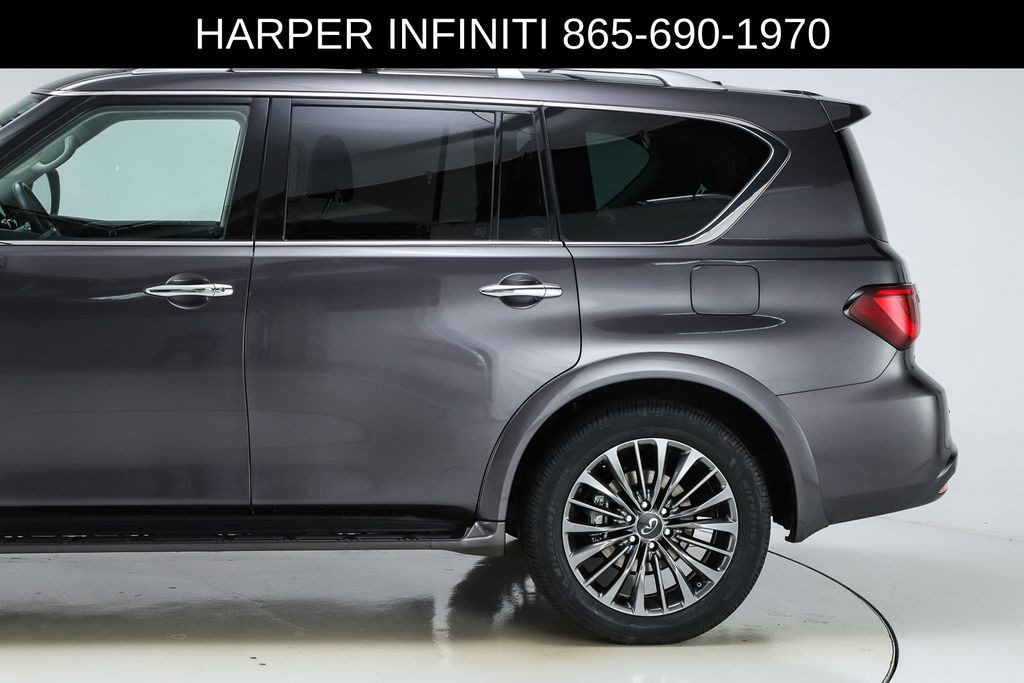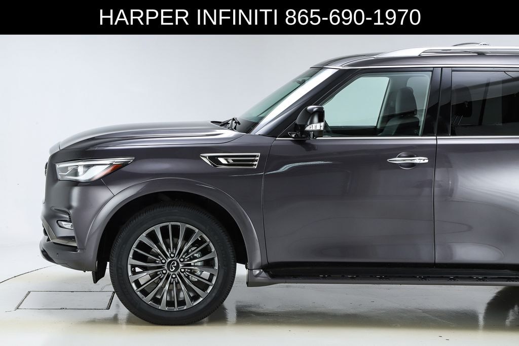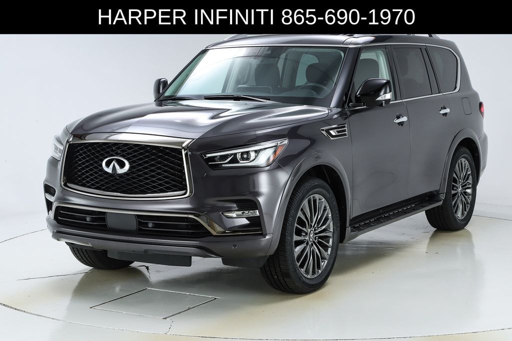 Harper INFINITI is pleased to offer this wonderful-looking 2023 INFINITI QX80 in Anthracite Gray HARPER INFINITI believes in the quality of the vehicles we sell so well that we provide an UNLIMITED MILES, POWERTRAIN WARRANTY on every new and qualifying pre-owned vehicle it sells!!! This warranty is good at any ASE certified shop in the 48 continental United States!! Check out all these great options Cargo Package (Cargo Net, Carpeted Cargo Mat, Center Console Tray, Console Net, and First-Aid Kit), Split Bench Seat Package, Navigation system: INFINITI InTouch Navigation, 13 Speakers, 2.937 Axle Ratio, 3rd row seats: split-bench, 4-Wheel Disc Brakes, ABS brakes, Air Conditioning, Alloy wheels, AM/FM radio: SiriusXM, Anti-whiplash front head restraints, Auto High-beam Headlights, Auto tilt-away steering wheel, Auto-dimming door mirrors, Auto-dimming Rear-View mirror, Auto-leveling suspension, Automatic temperature control, Brake assist, Bumpers: body-color, Compass, Delay-off headlights, Driver door bin, Driver vanity mirror, Dual front impact airbags, Dual front side impact airbags, Electronic Stability Control, Emergency communication system: INFINITI InTouch, Four wheel independent suspension, Front anti-roll bar, Front Bucket Seats, Front Center Armrest, Front dual zone A/C, Front fog lights, Front reading lights, Fully automatic headlights, Garage door transmitter: HomeLink, Heated door mirrors, Heated Front Bucket Seats, Heated front seats, Heated steering wheel, Illuminated entry, INFINITI Radiant Illuminated Kick Plates, Leather Shift Knob, Leather steering wheel, Leather-Appointed Seats, Literature Kit, Low tire pressure warning, Memory seat, Midyear Change, Occupant sensing airbag, Outside temperature display, Overhead airbag, Overhead console, Panic alarm, Passenger door bin, Passenger vanity mirror, Power door mirrors, Power driver seat, Power Liftgate, Power moonroof, Power passenger seat, Power steering, Power windows, Premium audio system: Bose, Premium Select Graphite Interior, Radio data system, Radio: Bose Premium Audio System w/13 Speakers, Rain sensing wipers, Rear air conditioning, Rear anti-roll bar, Rear reading lights, Rear seat center armrest, Rear window defroster, Rear window wiper, Reclining 3rd row seat, Remote keyless entry, Roof Rail Cross Bars, Security system, Speed control, Speed-sensing steering, Split folding rear seat, Spoiler, Steering wheel memory, Steering wheel mounted audio controls, Tachometer, Telescoping steering wheel, Tilt steering wheel, Traction control, Trip computer, Turn signal indicator mirrors, Variably intermittent wipers, Voltmeter, and Wheels: 22" x 8.0" Dark Chrome Cast Aluminum-Alloy.