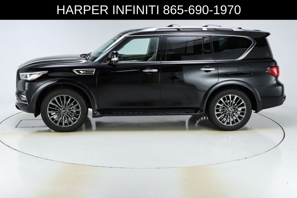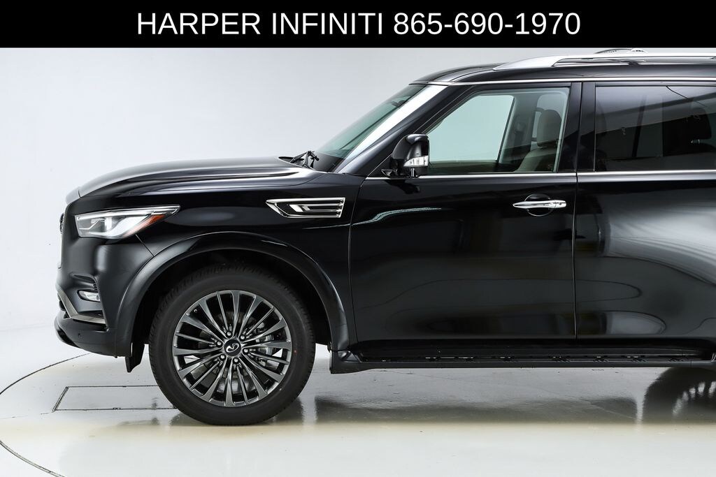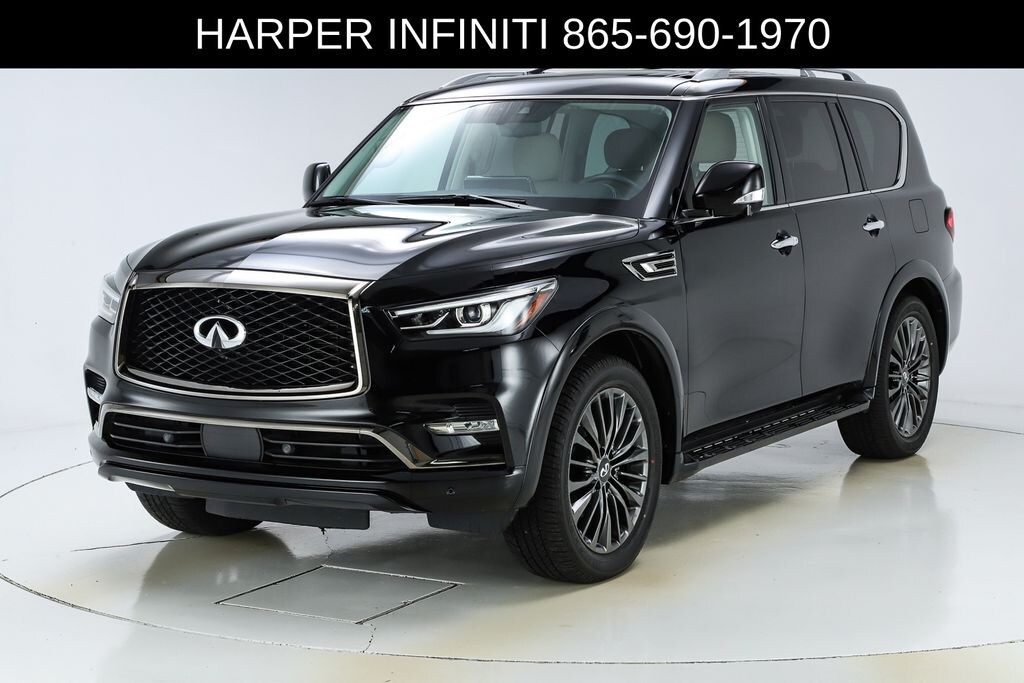 Harper INFINITI is proud to offer this charming-looking 2023 INFINITI QX80 in Mineral Black HARPER INFINITI believes in the quality of the vehicles we sell so well that we provide an UNLIMITED MILES, POWERTRAIN WARRANTY on every new and qualifying pre-owned vehicle it sells!!! This warranty is good at any ASE certified shop in the 48 continental United States!! Check out all these great options Cargo Package (Cargo Net, Carpeted Cargo Mat, Center Console Tray, Console Net, and First-Aid Kit), 13 Speakers, 2.937 Axle Ratio, 3rd row seats: split-bench, 4-Wheel Disc Brakes, ABS brakes, Air Conditioning, Alloy wheels, AM/FM radio: SiriusXM, Anti-whiplash front head restraints, Auto High-beam Headlights, Auto tilt-away steering wheel, Auto-dimming door mirrors, Auto-dimming Rear-View mirror, Auto-leveling suspension, Automatic temperature control, Brake assist, Bumpers: body-color, Compass, Delay-off headlights, Driver door bin, Driver vanity mirror, Dual front impact airbags, Dual front side impact airbags, Electronic Stability Control, Emergency communication system: INFINITI InTouch, Four wheel independent suspension, Front anti-roll bar, Front Bucket Seats, Front Center Armrest, Front dual zone A/C, Front fog lights, Front reading lights, Fully automatic headlights, Garage door transmitter: HomeLink, Heated door mirrors, Heated Front Bucket Seats, Heated front seats, Heated steering wheel, Illuminated entry, INFINITI Radiant Illuminated Kick Plates, Leather Shift Knob, Leather steering wheel, Leather-Appointed Seats, Literature Kit, Low tire pressure warning, Memory seat, Midyear Change, Navigation system: INFINITI InTouch Navigation, Occupant sensing airbag, Outside temperature display, Overhead airbag, Overhead console, Panic alarm, Passenger door bin, Passenger vanity mirror, Power door mirrors, Power driver seat, Power Liftgate, Power moonroof, Power passenger seat, Power steering, Power windows, Premium audio system: Bose, Premium Select Sahara Stone Interior, Radio data system, Radio: Bose Premium Audio System w/13 Speakers, Rain sensing wipers, Rear air conditioning, Rear anti-roll bar, Rear reading lights, Rear seat center armrest, Rear window defroster, Rear window wiper, Reclining 3rd row seat, Remote keyless entry, Roof Rail Cross Bars, Security system, Speed control, Speed-sensing steering, Split folding rear seat, Spoiler, Steering wheel memory, Steering wheel mounted audio controls, Tachometer, Telescoping steering wheel, Tilt steering wheel, Traction control, Trip computer, Turn signal indicator mirrors, Variably intermittent wipers, Voltmeter, and Wheels: 22" x 8.0" Dark Chrome Cast Aluminum-Alloy.